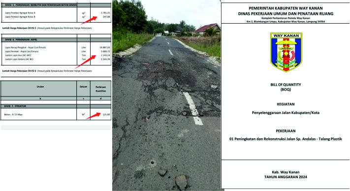 Way Kanan — Proyek peningkatan dan rekonstruksi jalan Simpang Andalas – Talang Plastik di Kecamatan Blambangan Umpu, Kabupaten Way Kanan, kembali menuai sorotan tajam dari masyarakat. Jalan yang menelan anggaran Rp17 miliar dan dikerjakan oleh PT Alvin Akbar Kontriksindo pada tahun 2024 itu kini kondisinya memprihatinkan — padahal baru setahun selesai dikerjakan.