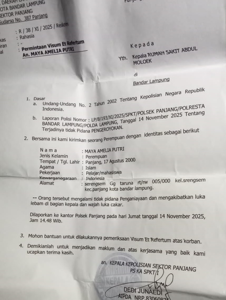 Usai kejadian, korban langsung melaporkan insiden tersebut ke Polsek setempat. Pihak keluarga berharap laporan itu segera diproses sesuai hukum yang berlaku.