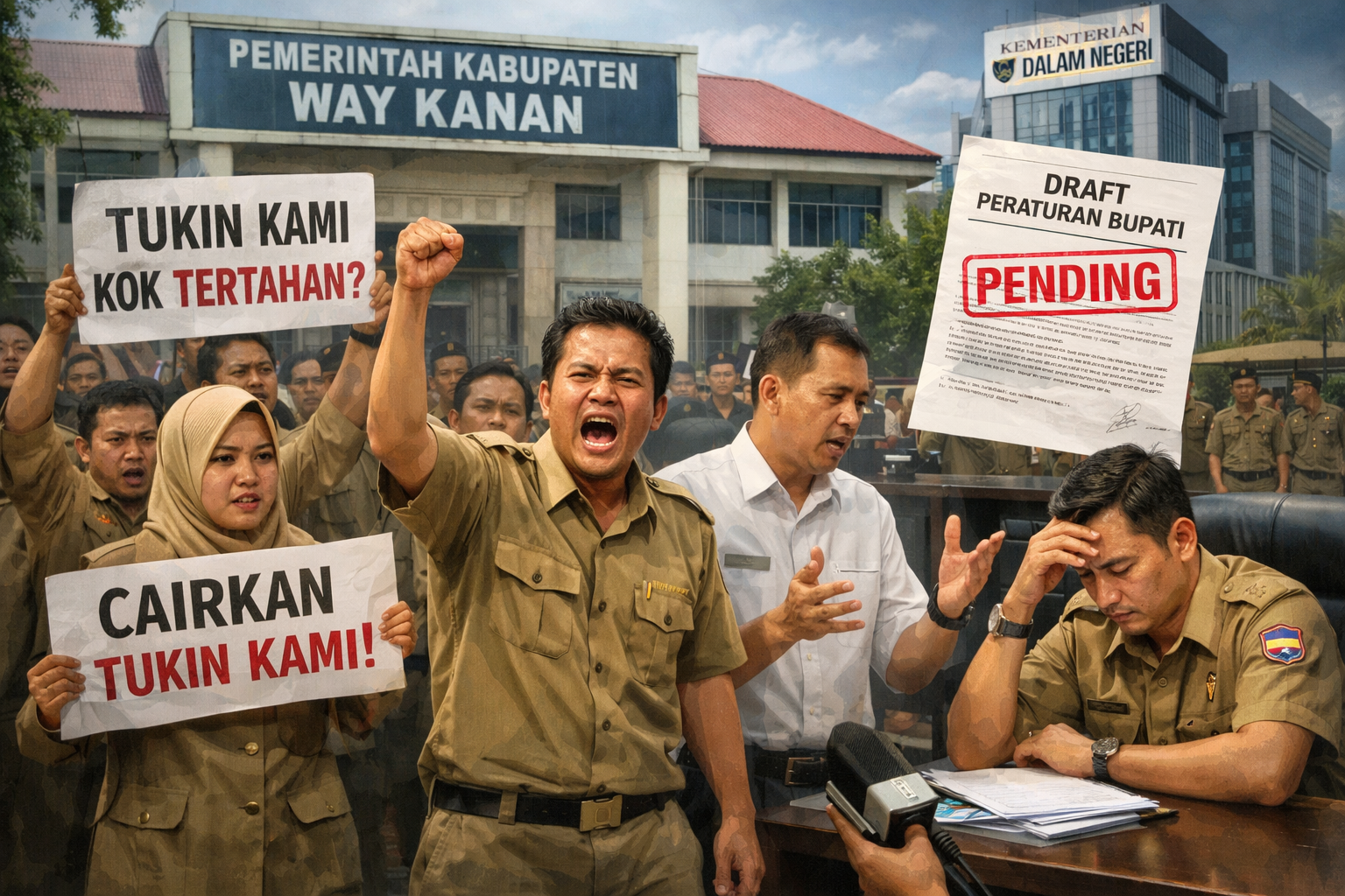 Blambangan Umpu,Lampung — Ratusan Aparatur Sipil Negara (ASN) di lingkungan Pemerintah Kabupaten Way Kanan mulai bersuara. Mereka menilai kepemimpinan daerah abai terhadap nasib pegawai, menyusul belum cairnya tunjangan kinerja (tukin) hingga pertengahan April 2026.